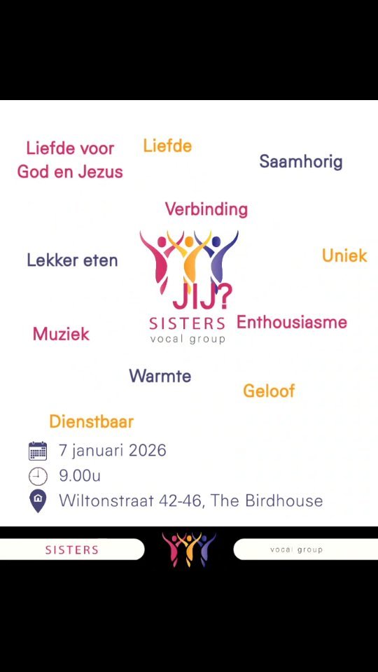 Sisters Vocal Group zingt vol passie en enthousiasme over Gods liefde. We brengen mensen samen door muziek. Met elke noot willen we harten verbinden en een boodschap van eenheid en geloof, hoop en liefde verspreiden.